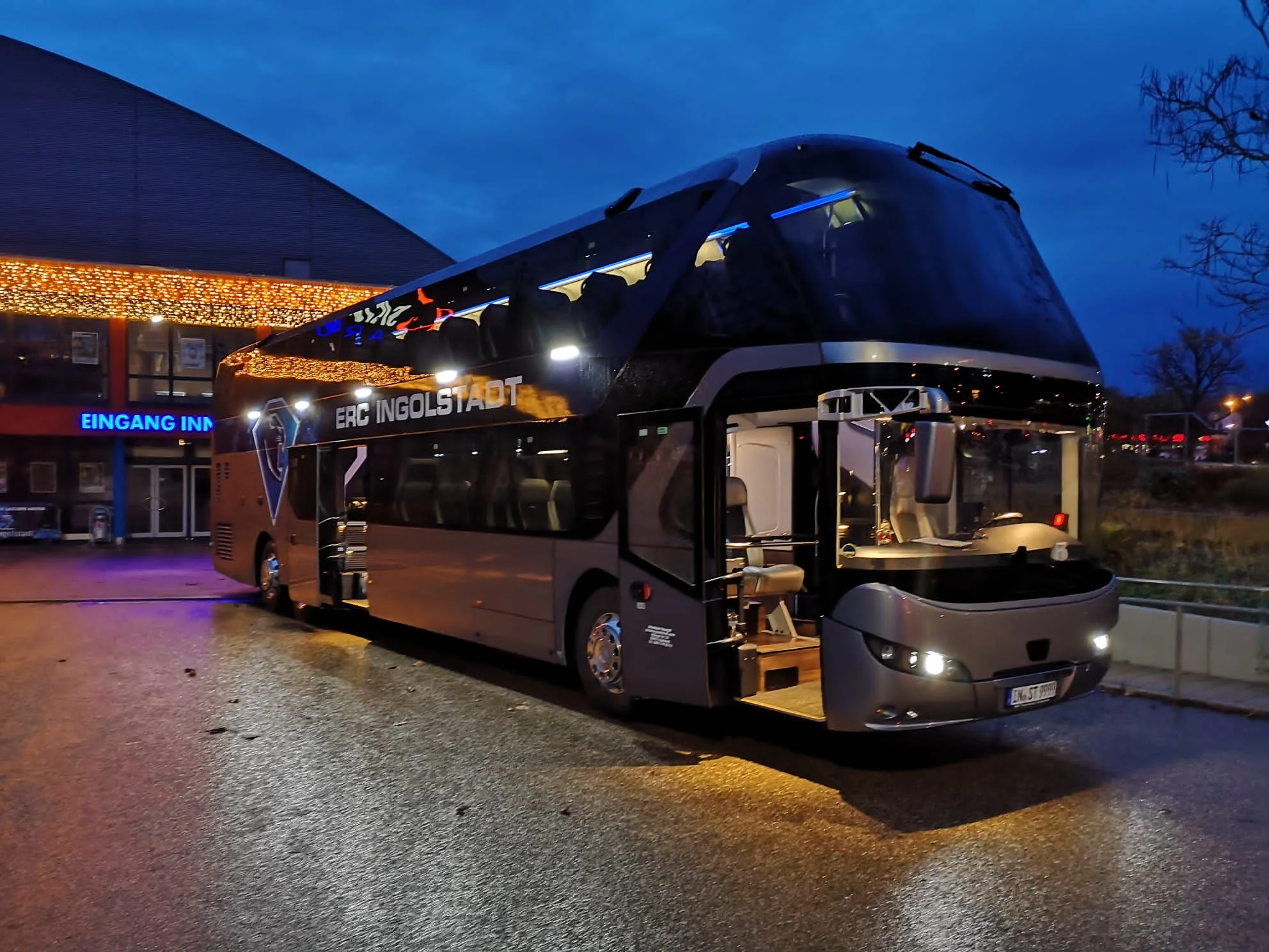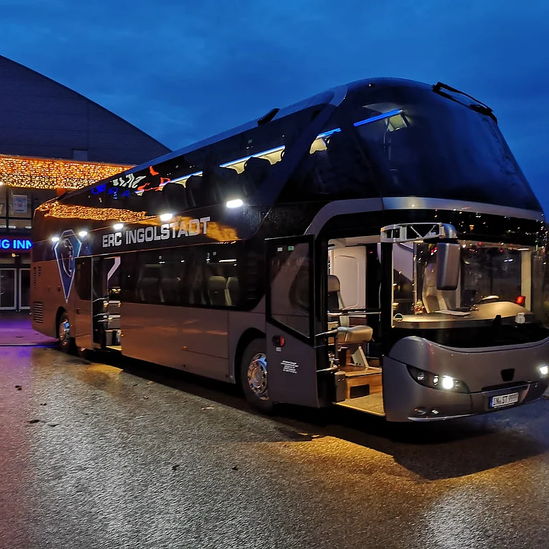 Hierbei handelt es sich um den offiziellen Mannschaftsbus des ERC Ingolstadt. Dieser überzeugt mit folgender Zusatzausstattung:
