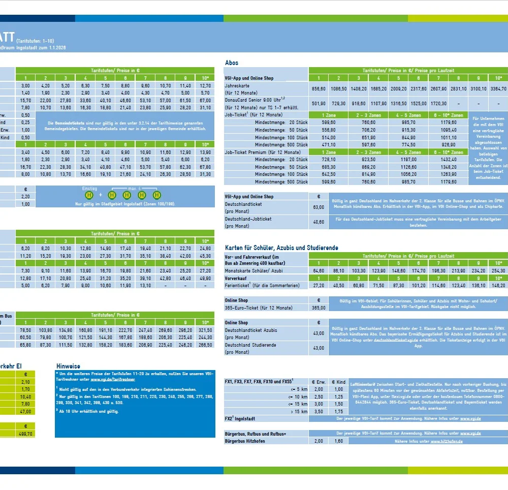 Als Verbundunternehmen der VGI gelten auf den von uns bedienten Linien die Tarife der VGI